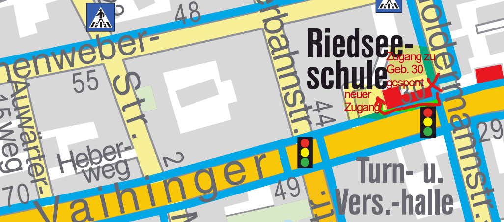 Beeinträchtigung des empfohlenen Schulwegs der Riedseeschule durch Baumaßnahmen